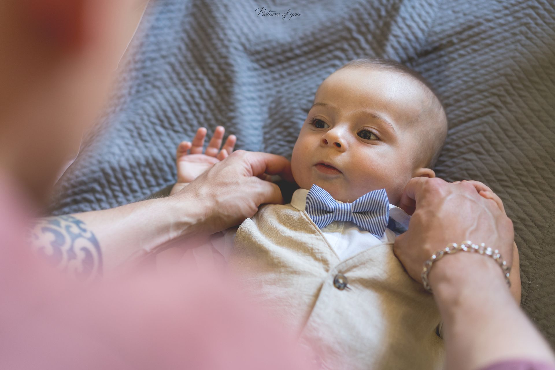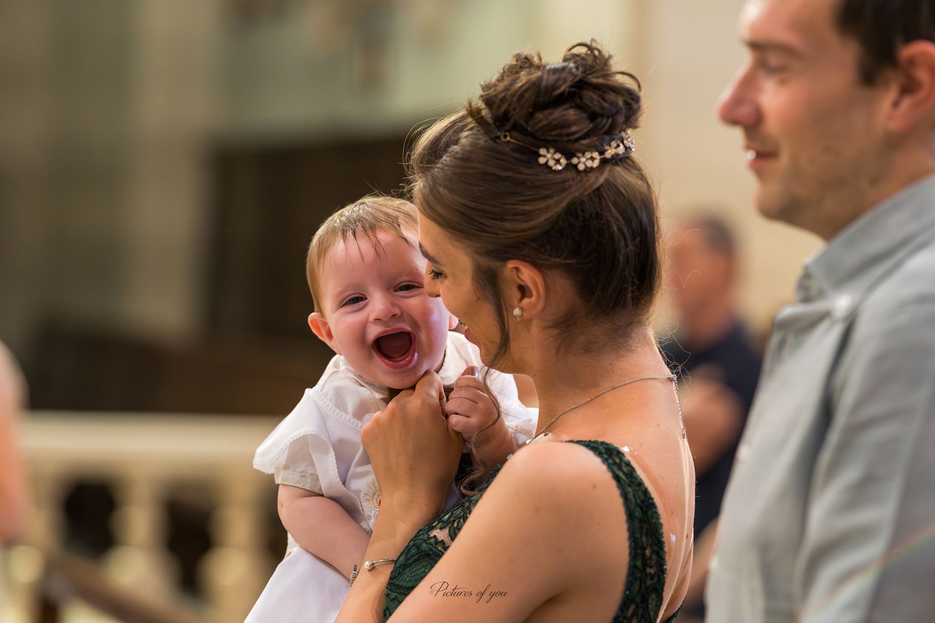 Il servizio fotografico per il battesimo si apre con la cattura dei momenti di preparazione del bambino/a da parte dei genitori, immortalando tutti gli istanti più intimi antecedenti alla cerimonia. L'obiettivo è documentare ogni dettaglio significativo.